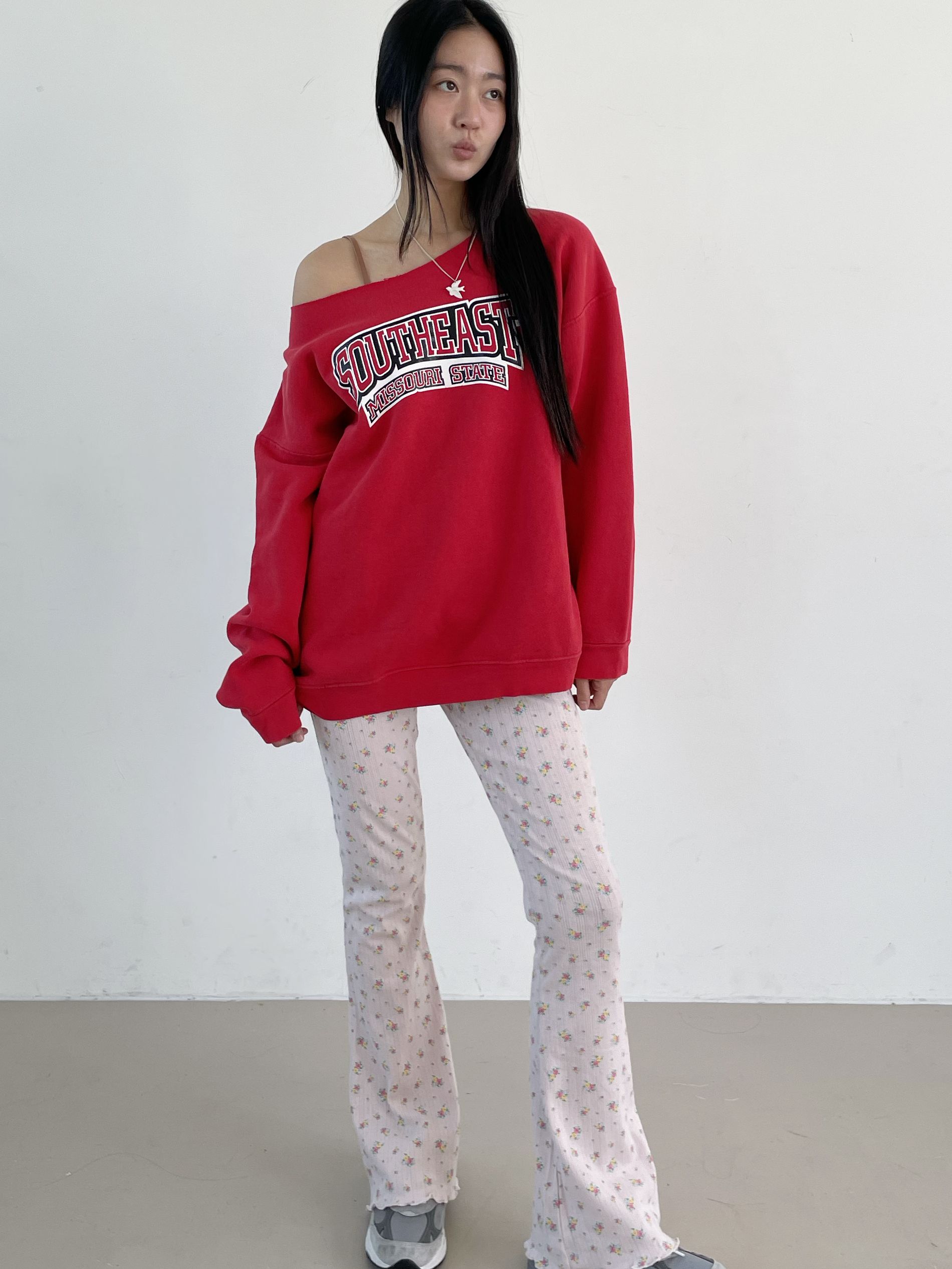 - 오프숄더로 연출이 가능한 스웻셔츠