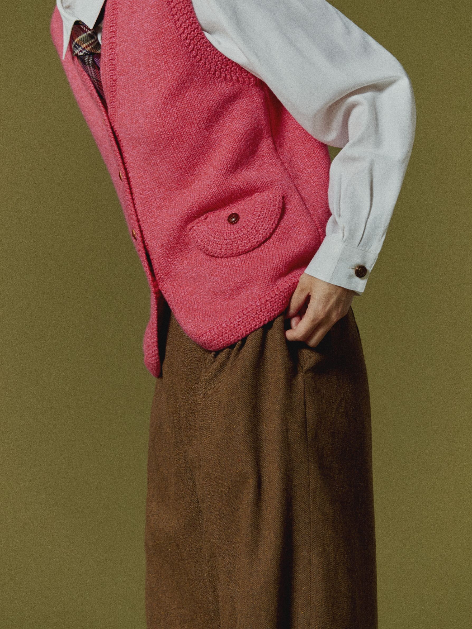 할머니 옷장에서 꺼내온 듯한 니트 베스트.