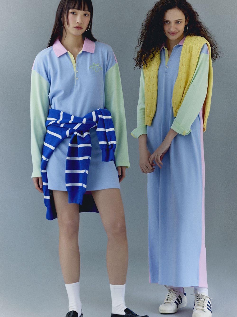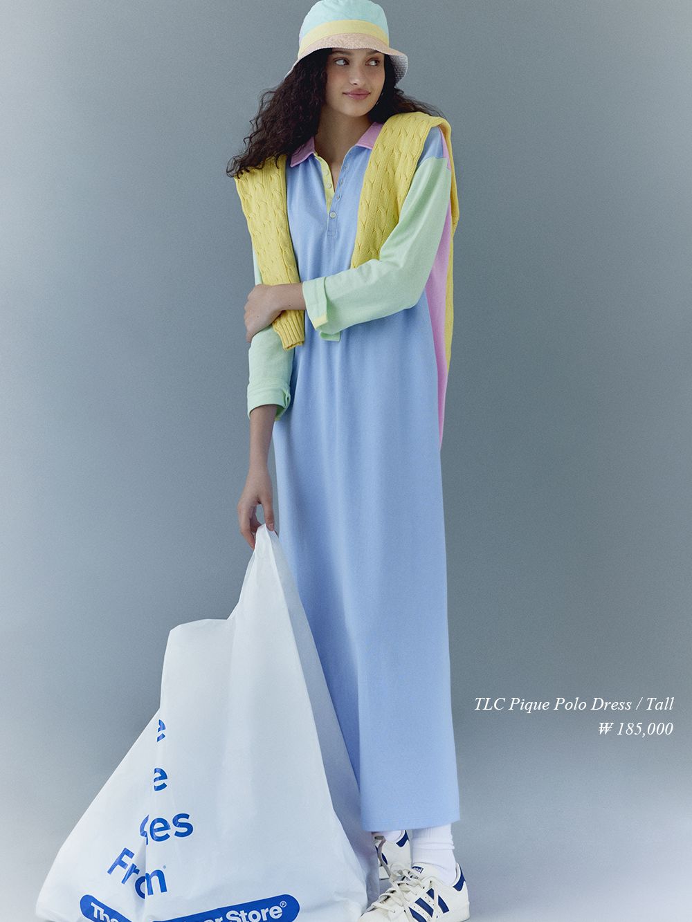 90년대 스포츠 웨어 트렌드 무드를 담은 피케 폴로 드레스입니다. 길이가 긴 톨 (Tall) 버전과 짧은 숏 (Short) 두 가지 사이즈로 출시가 되었습니다.