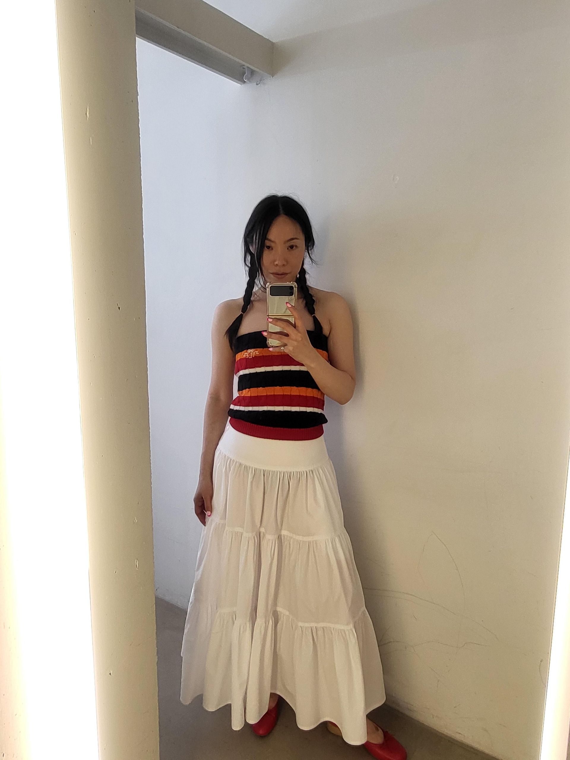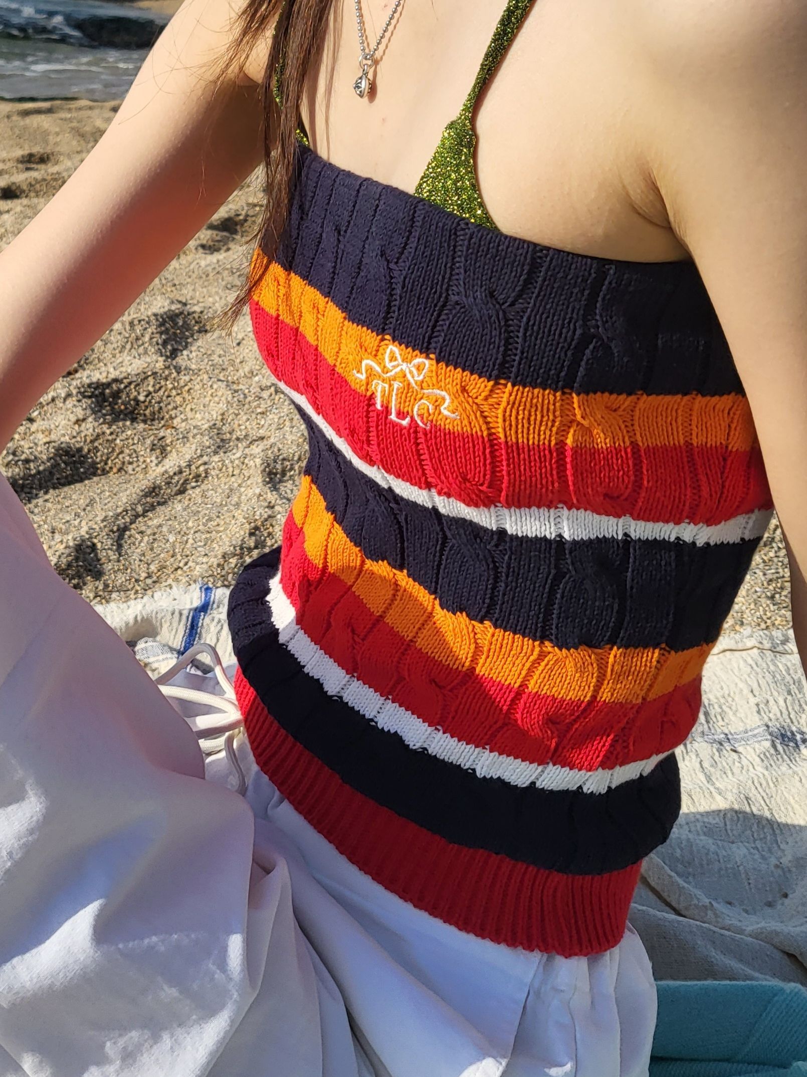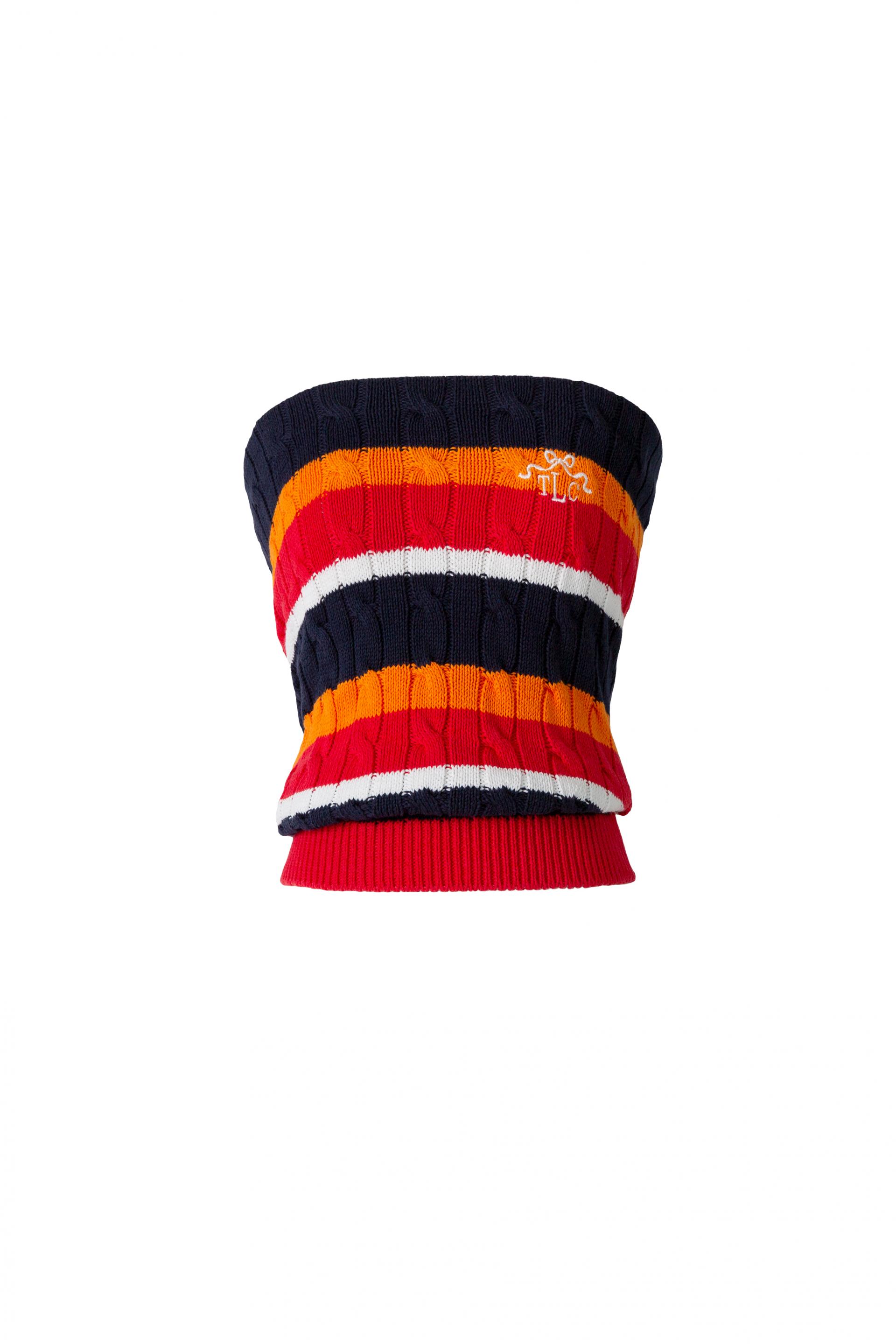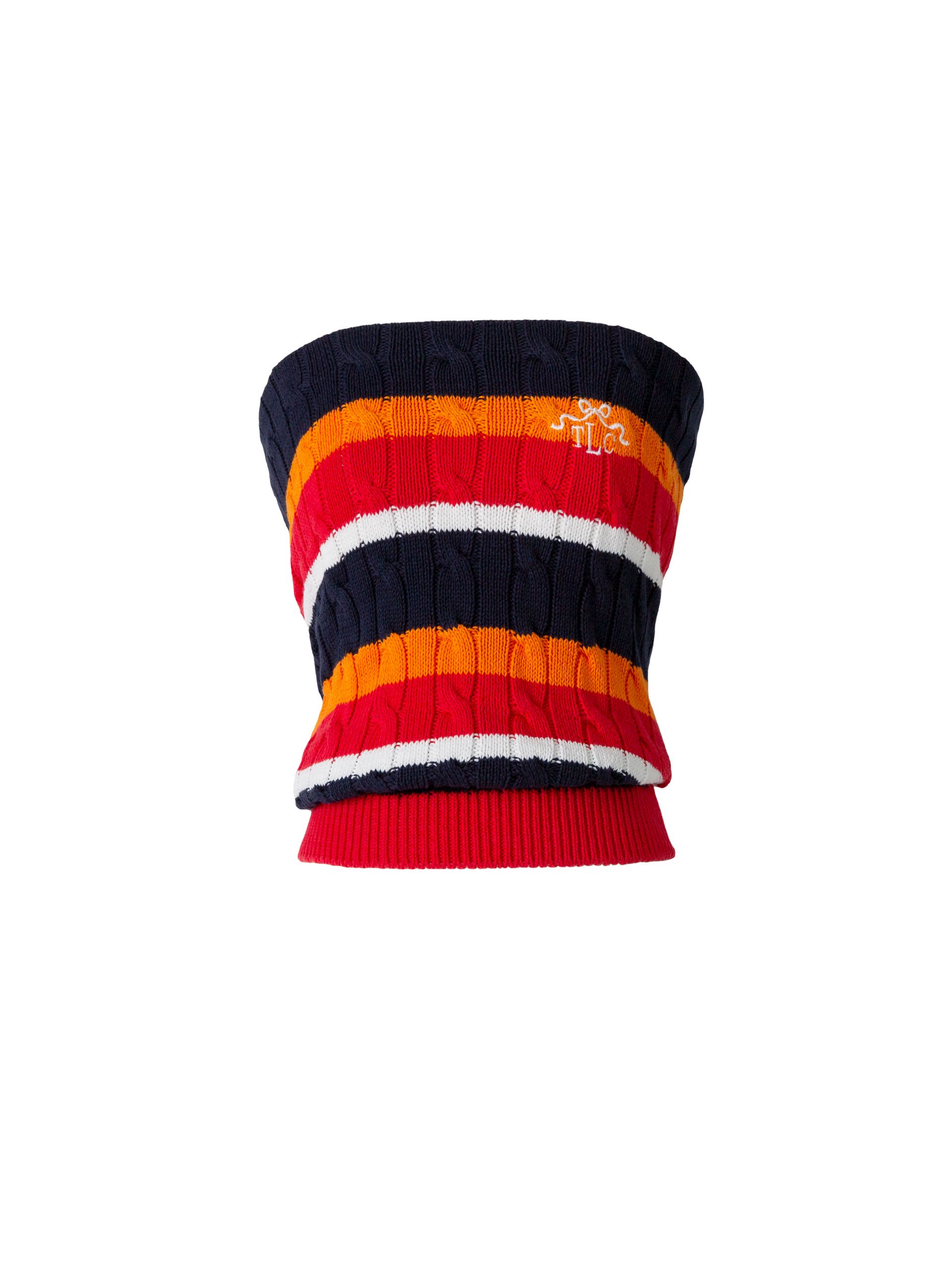 케이블 스티치로 짜여진 코튼 니트 튜브 톱.