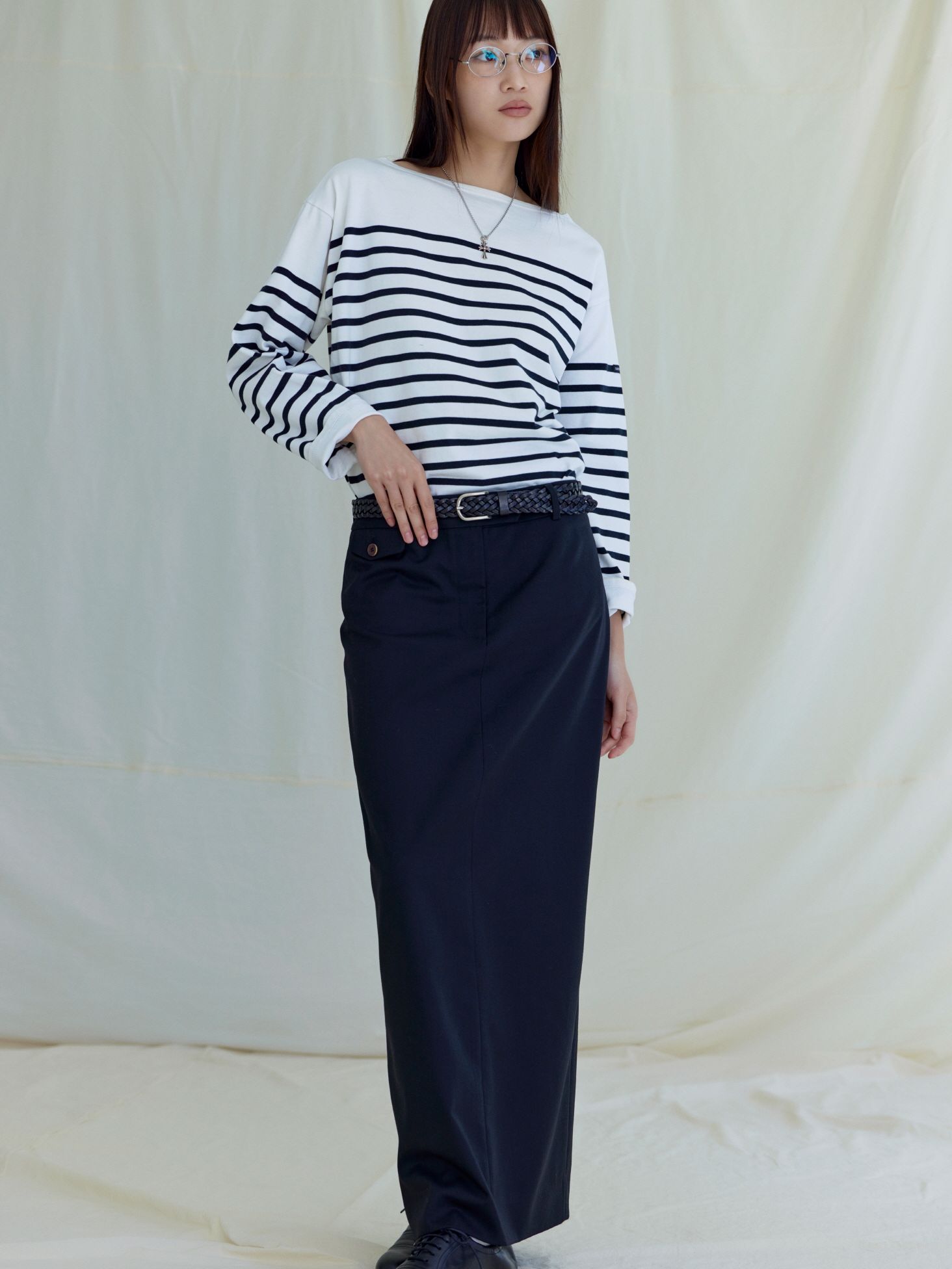 슬림한 H라인의 날렵한 롱 스커트입니다.