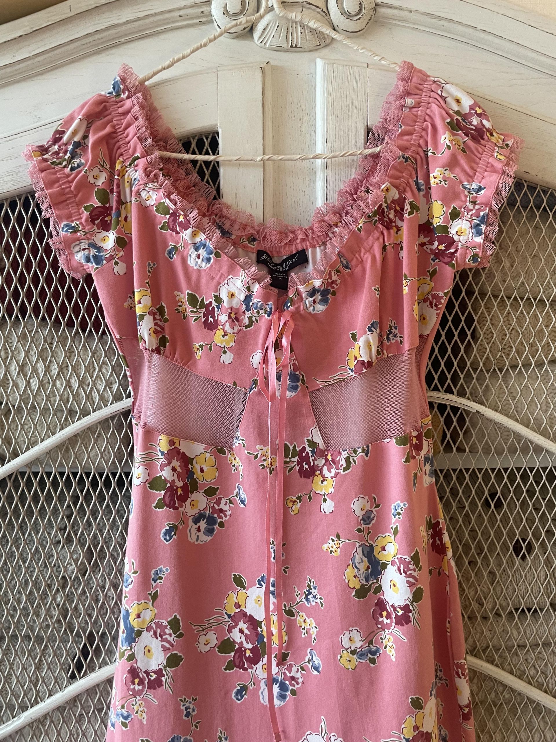 더러브컴즈가 사랑하는 디자이너 Betsey Johnson 벳시 존슨의 코튼 소재 플로럴 드레스입니다. 네크라인과 소매를 따라 달린 레이스와 리본장식이 매우 사랑스러운 드레스에요!