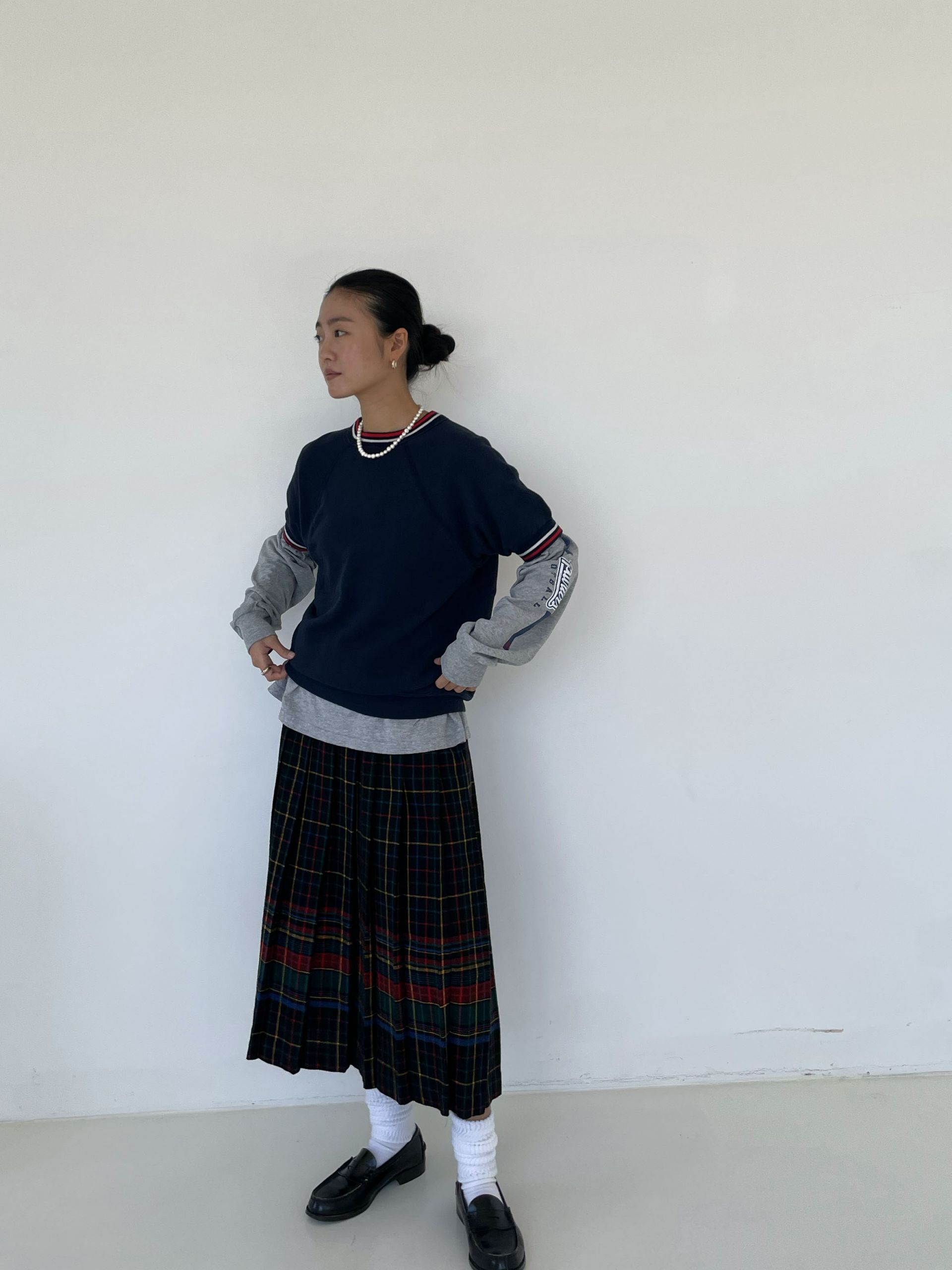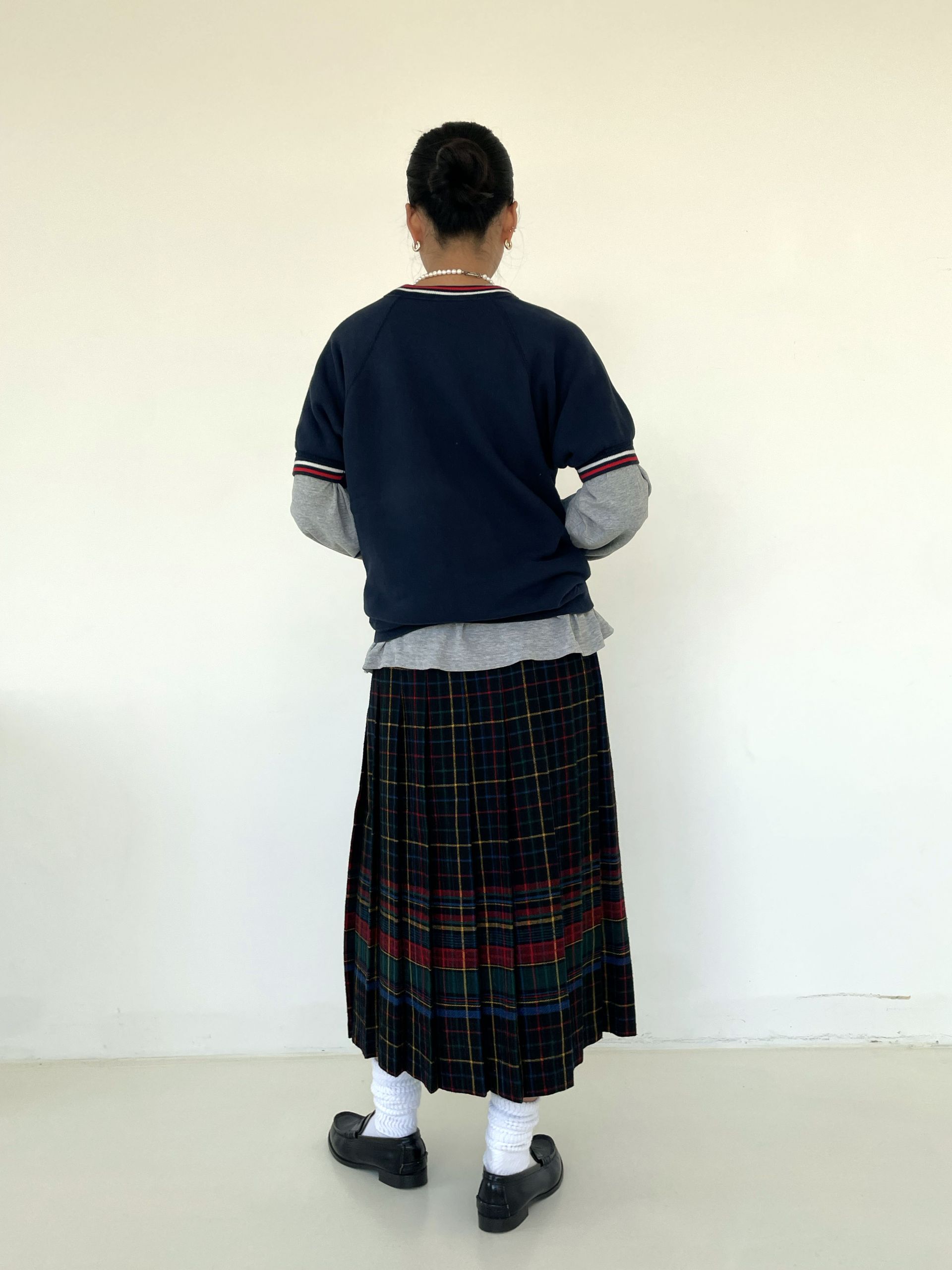 Wool Plaid Pleats Skirt