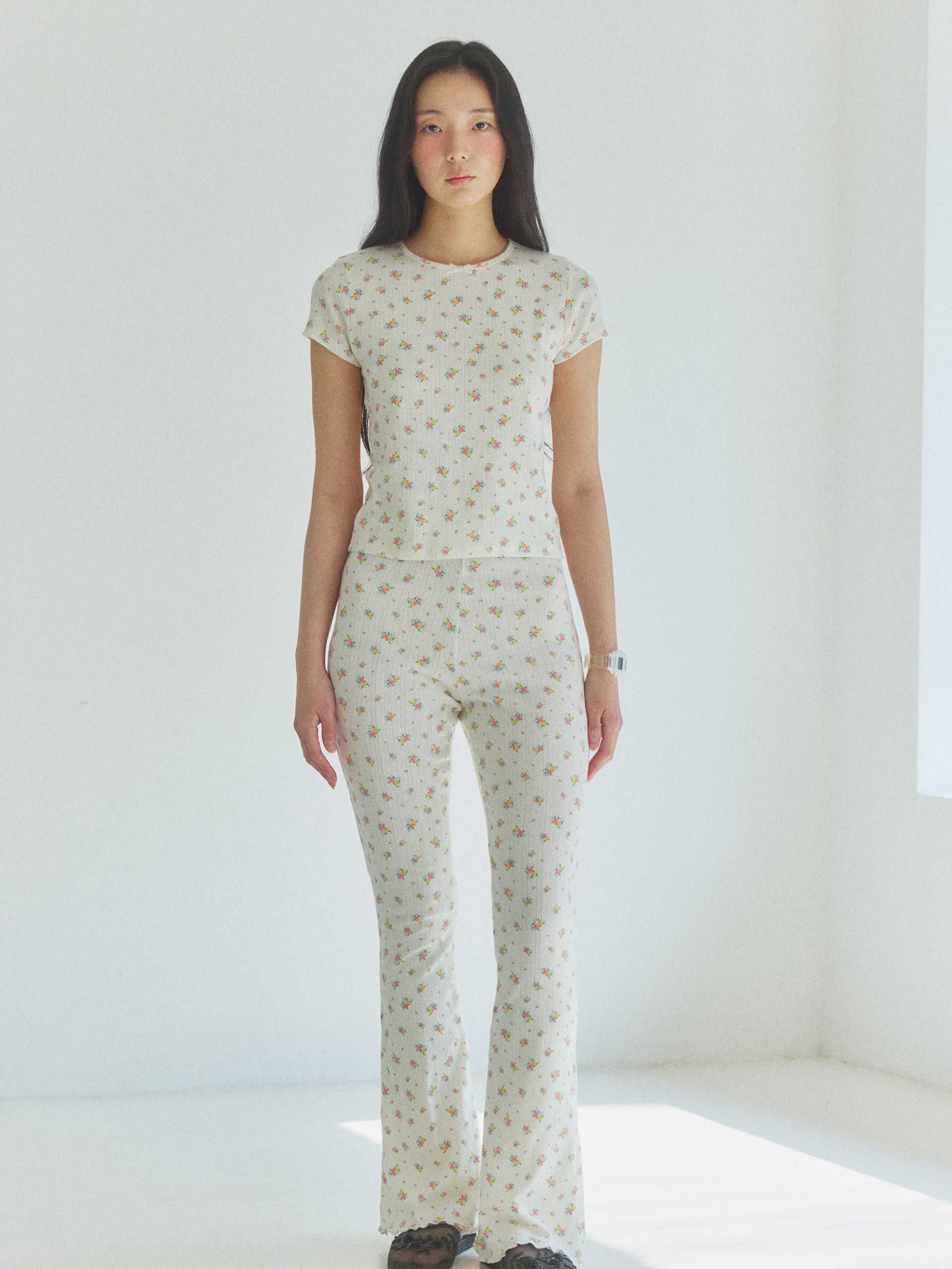 TLC Pointelle Flare Pants / [Cream]
