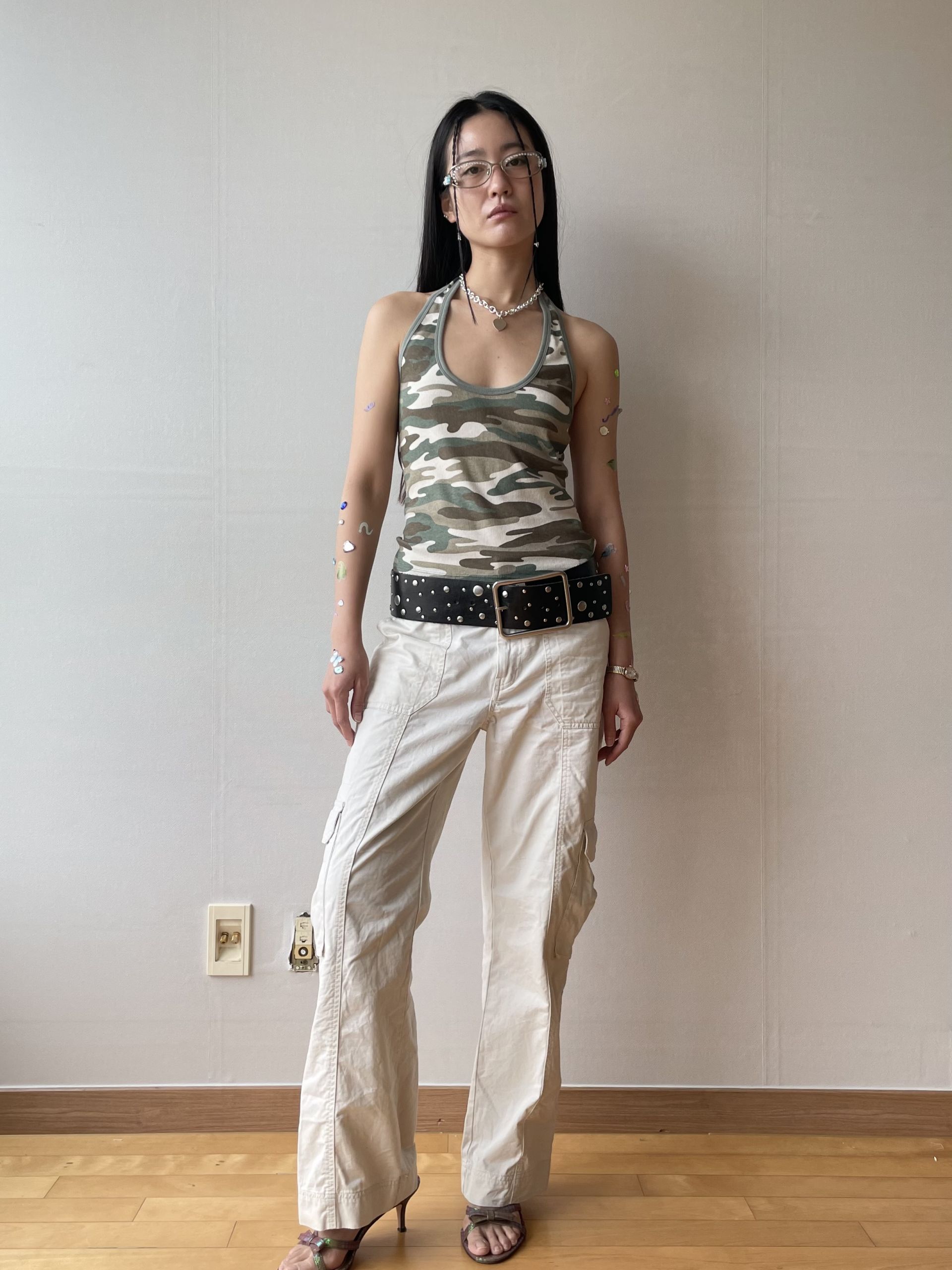 - 신축성이 좋은 골지 스판 소재의 홀터탑