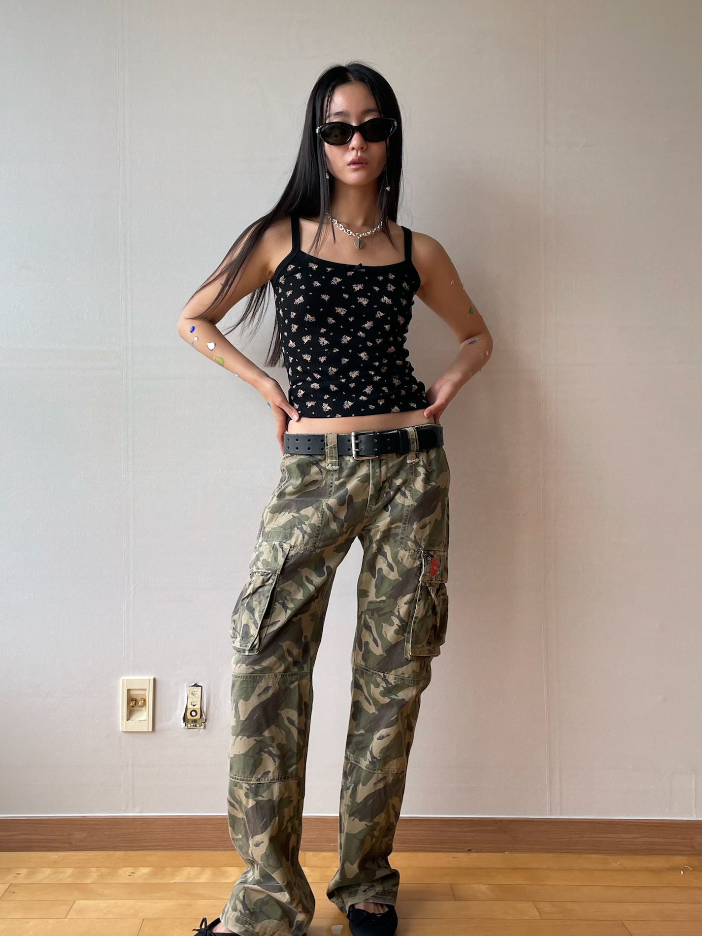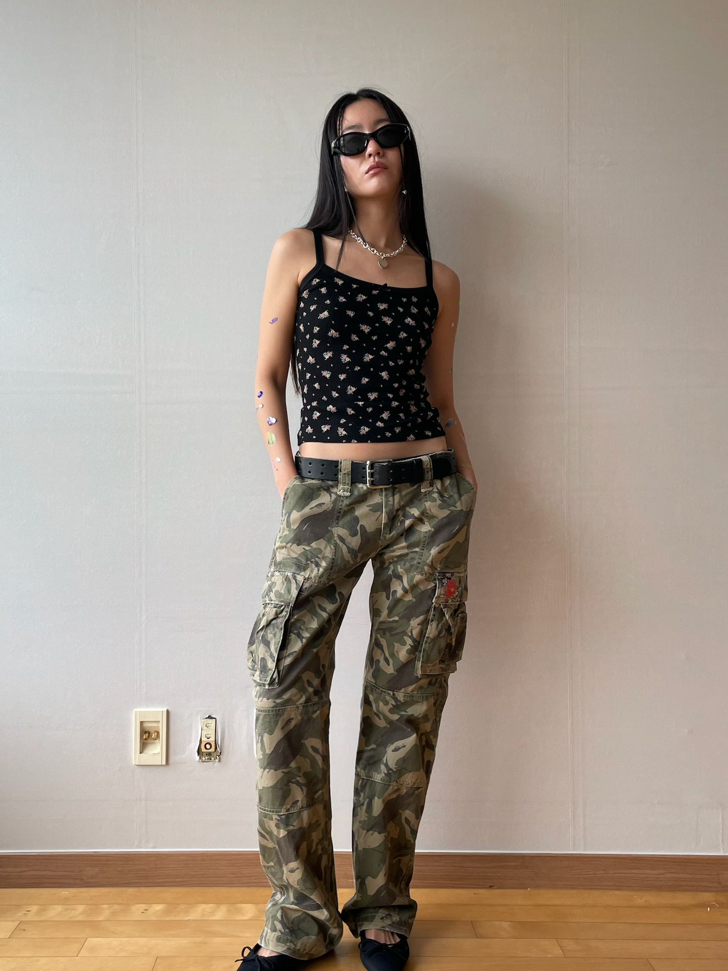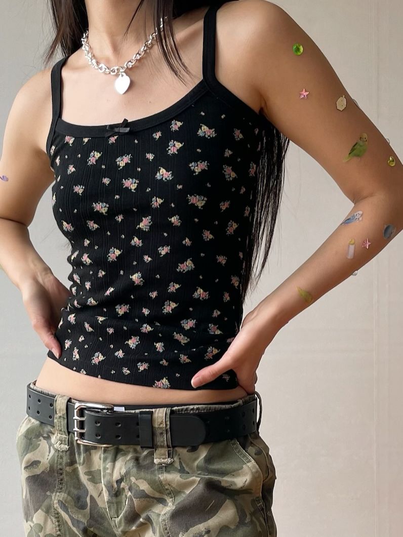 -Color: Black with Ditsy Flower