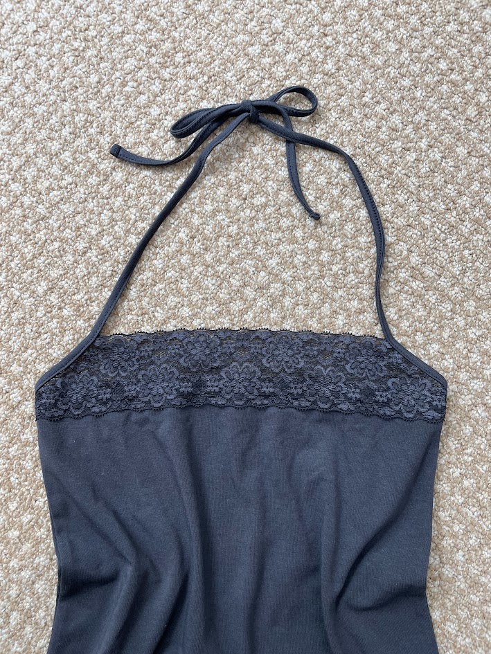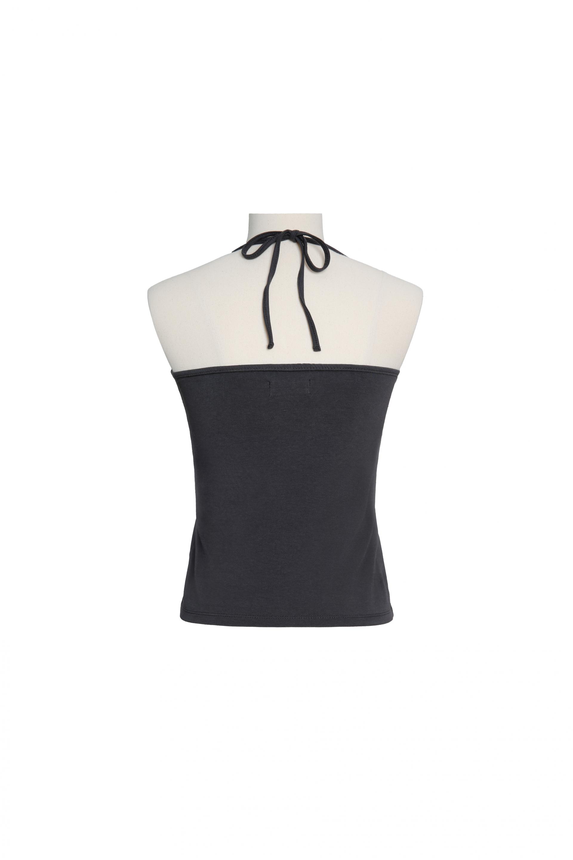 - 목 뒤로 끈을 묶는 홀터 넥 디자인