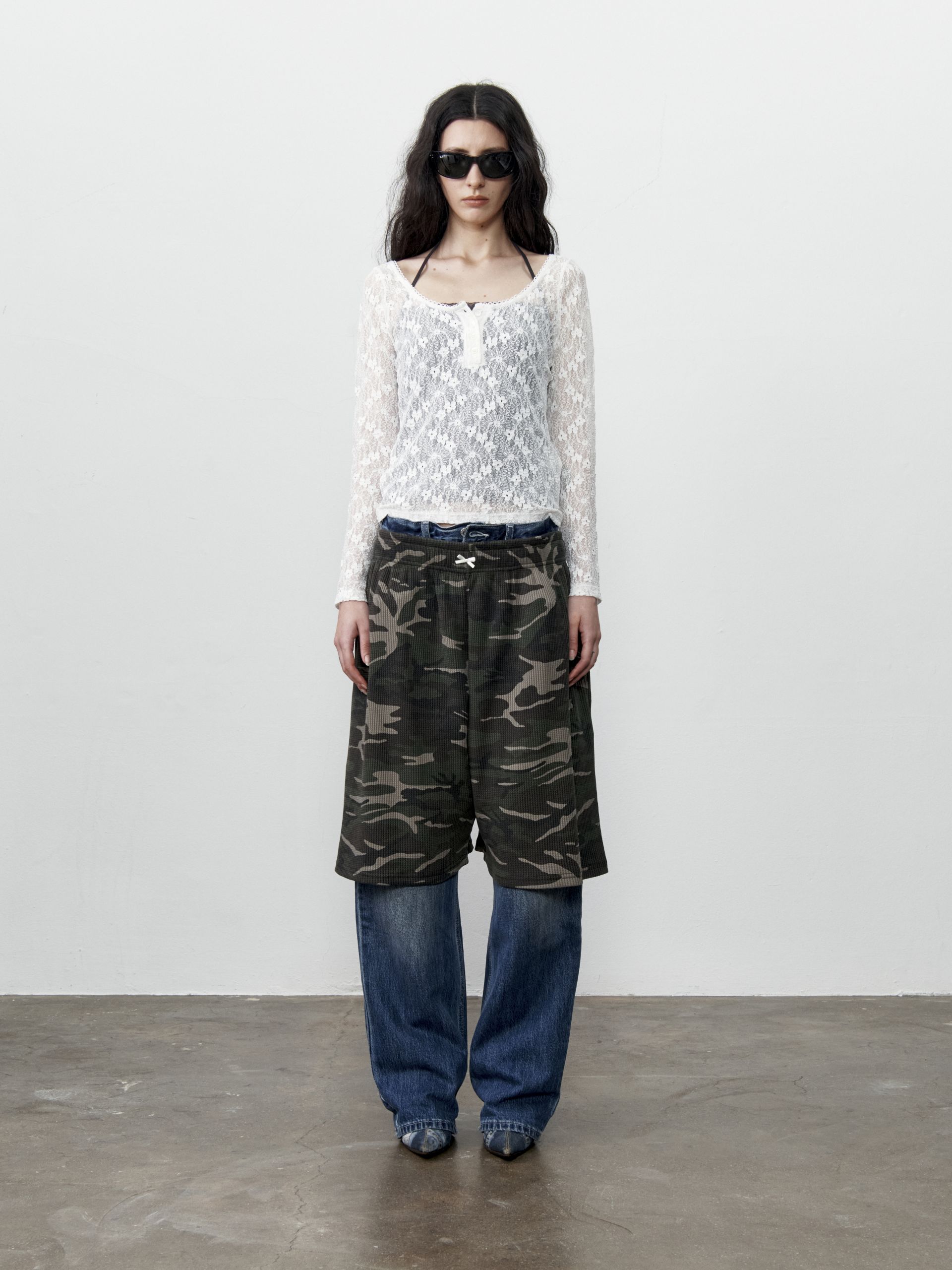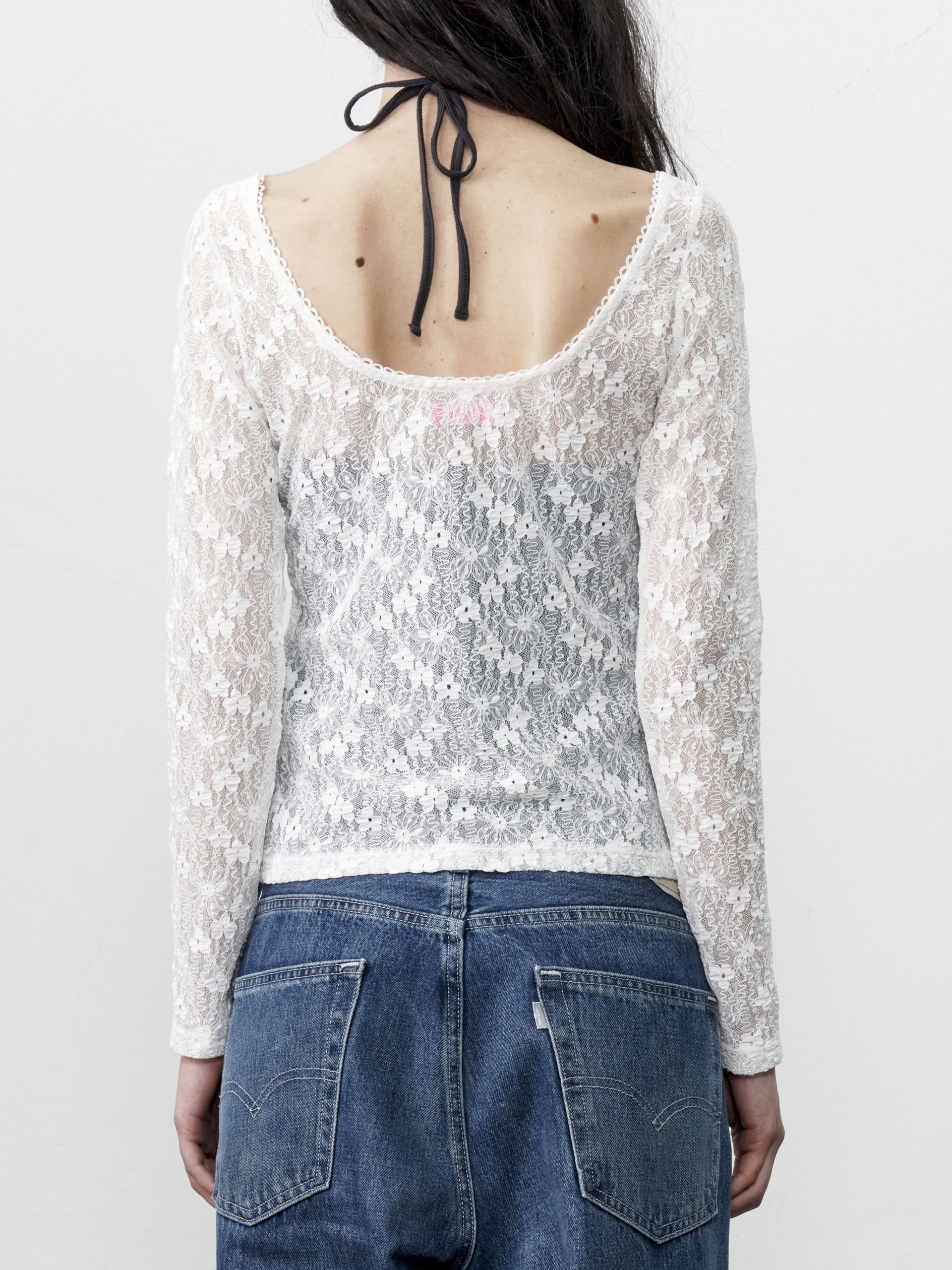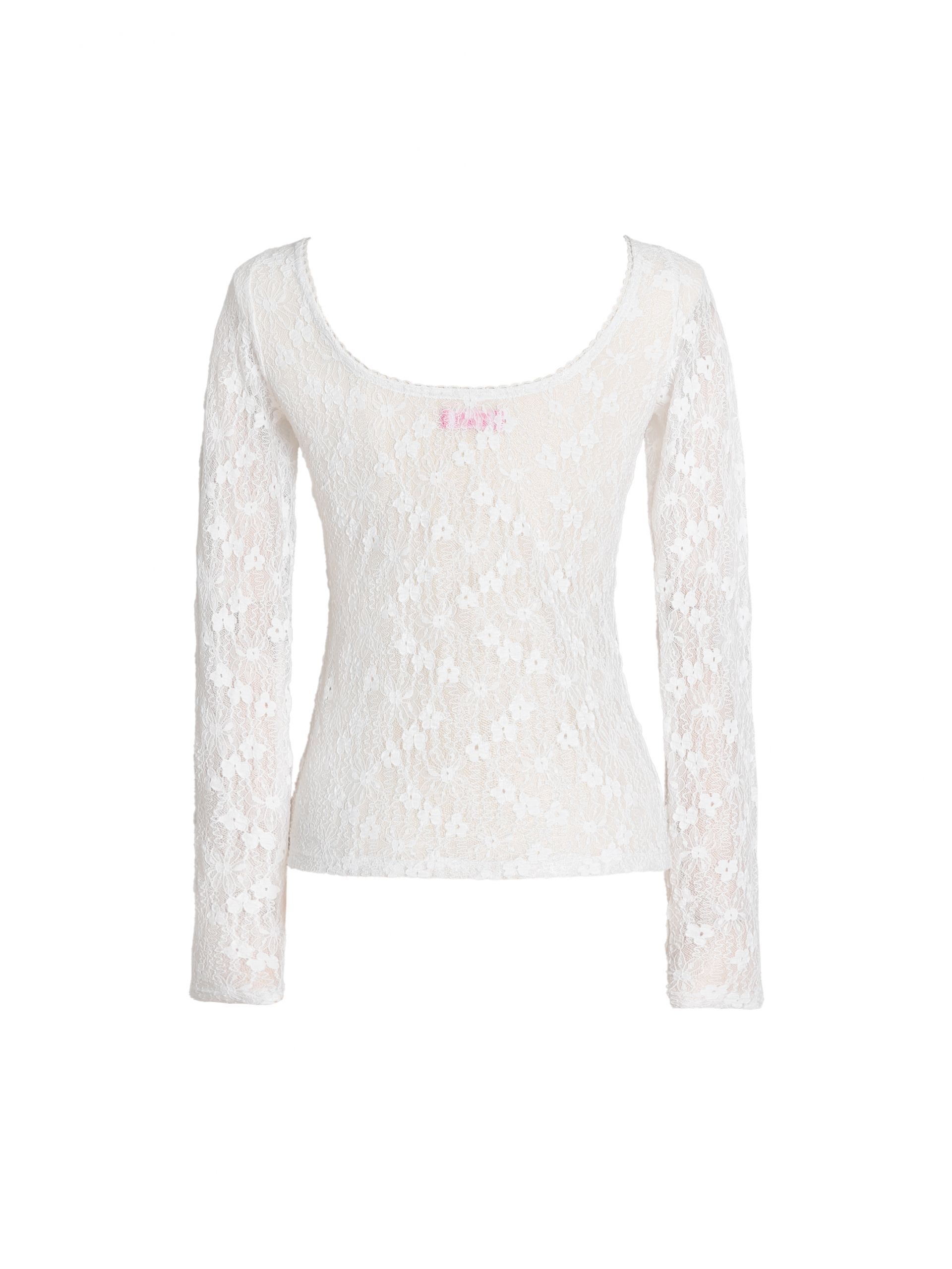 - 네크라인을 따라 달린 스캘롭 레이스 피코트 디테일