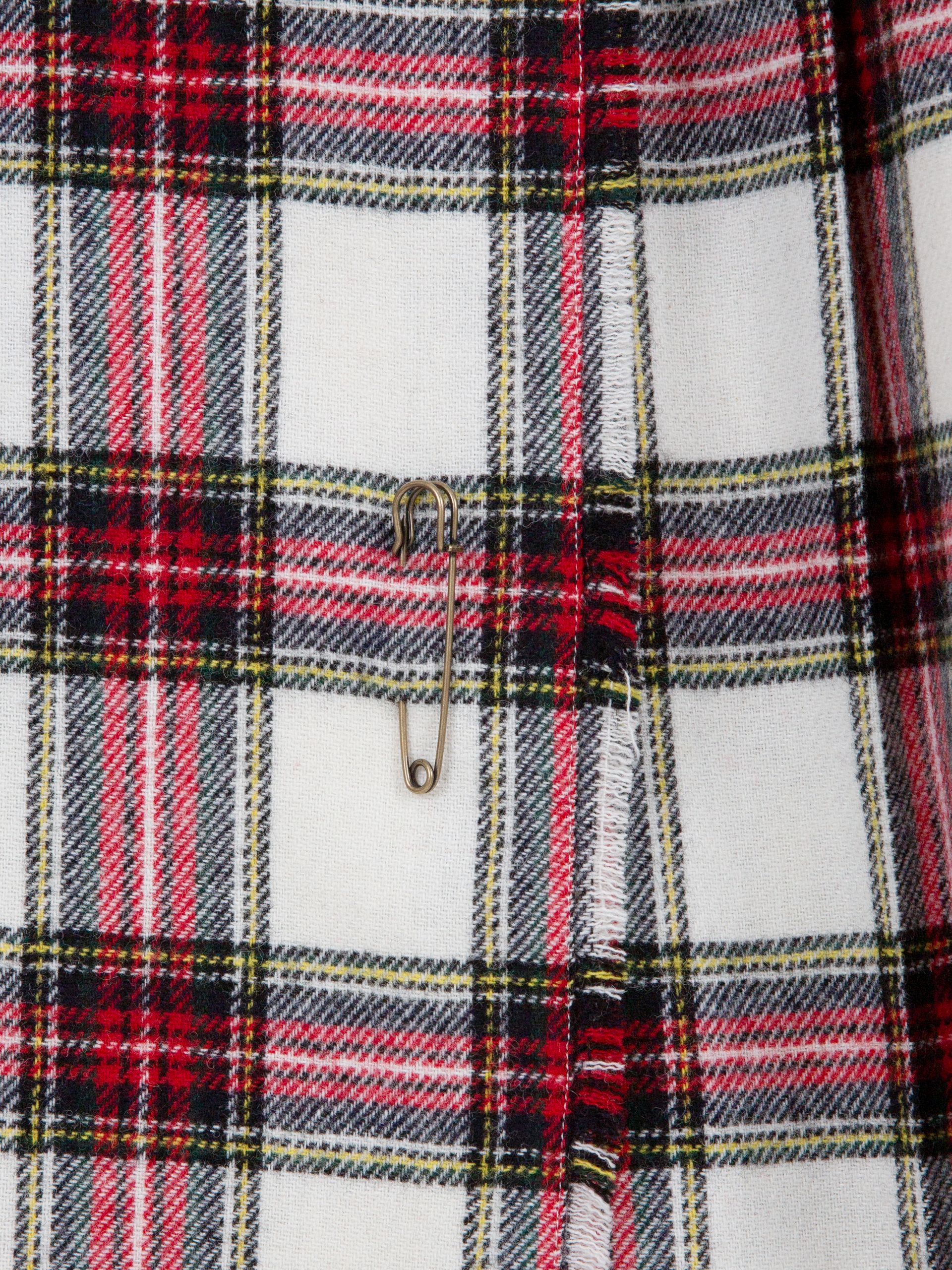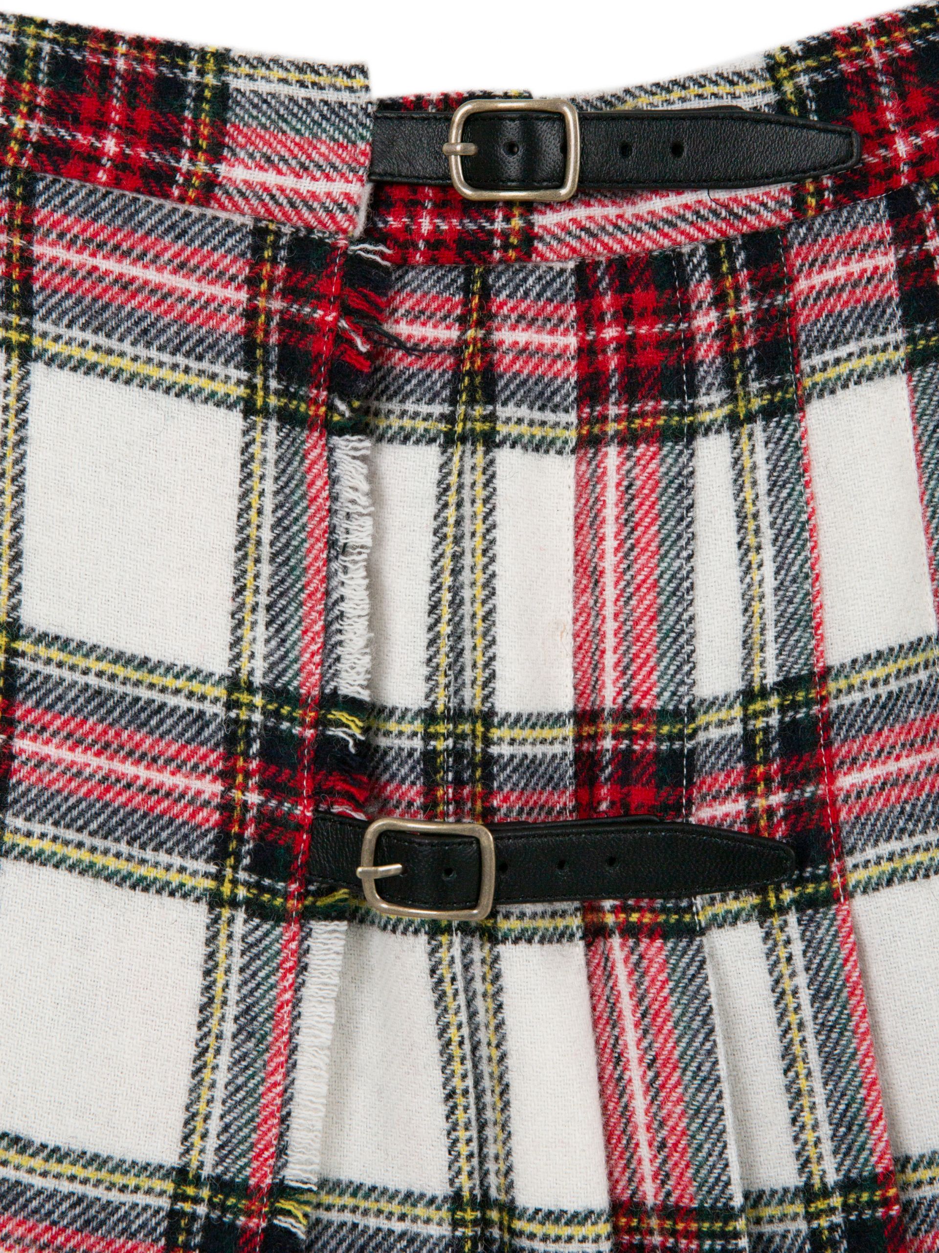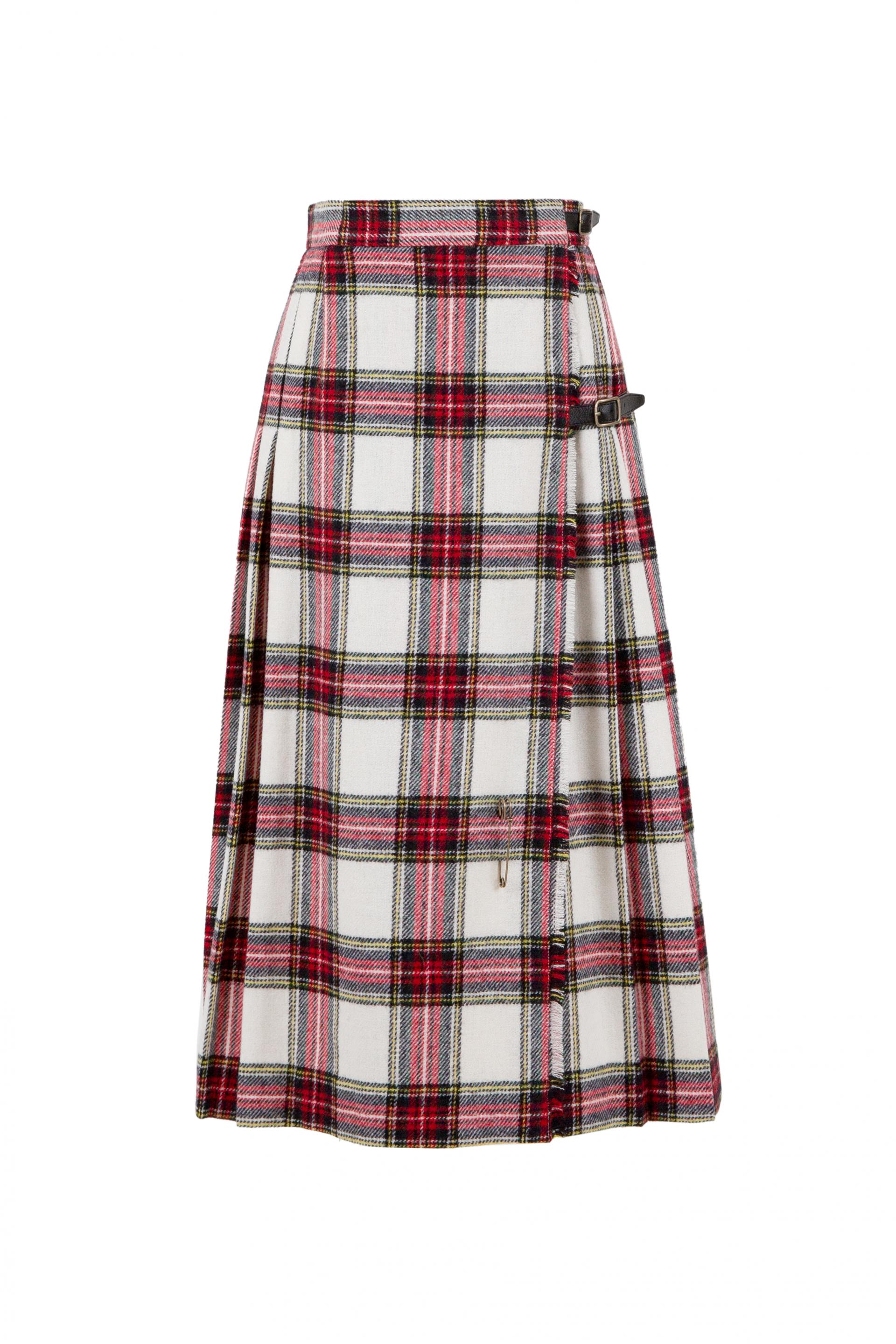 앞면은 플랫, 뒷면은 플리츠, 허리 부분의 버클 잠금, 스커트 트임 부분을 고정 시킬 수 있는 세이프티 핀까지 오리지널 킬트 스커트의 디테일을 고스란히 담았습니다.