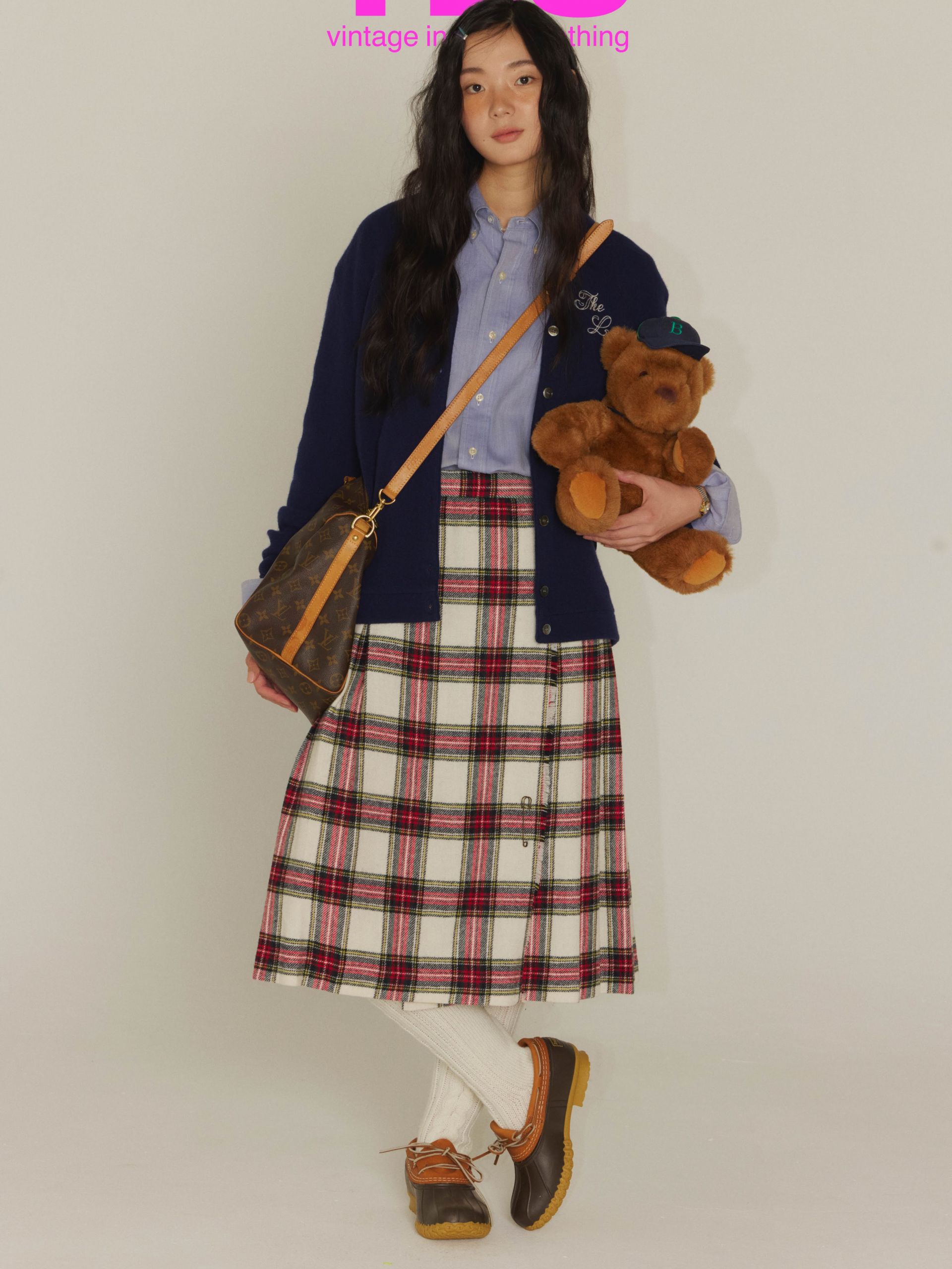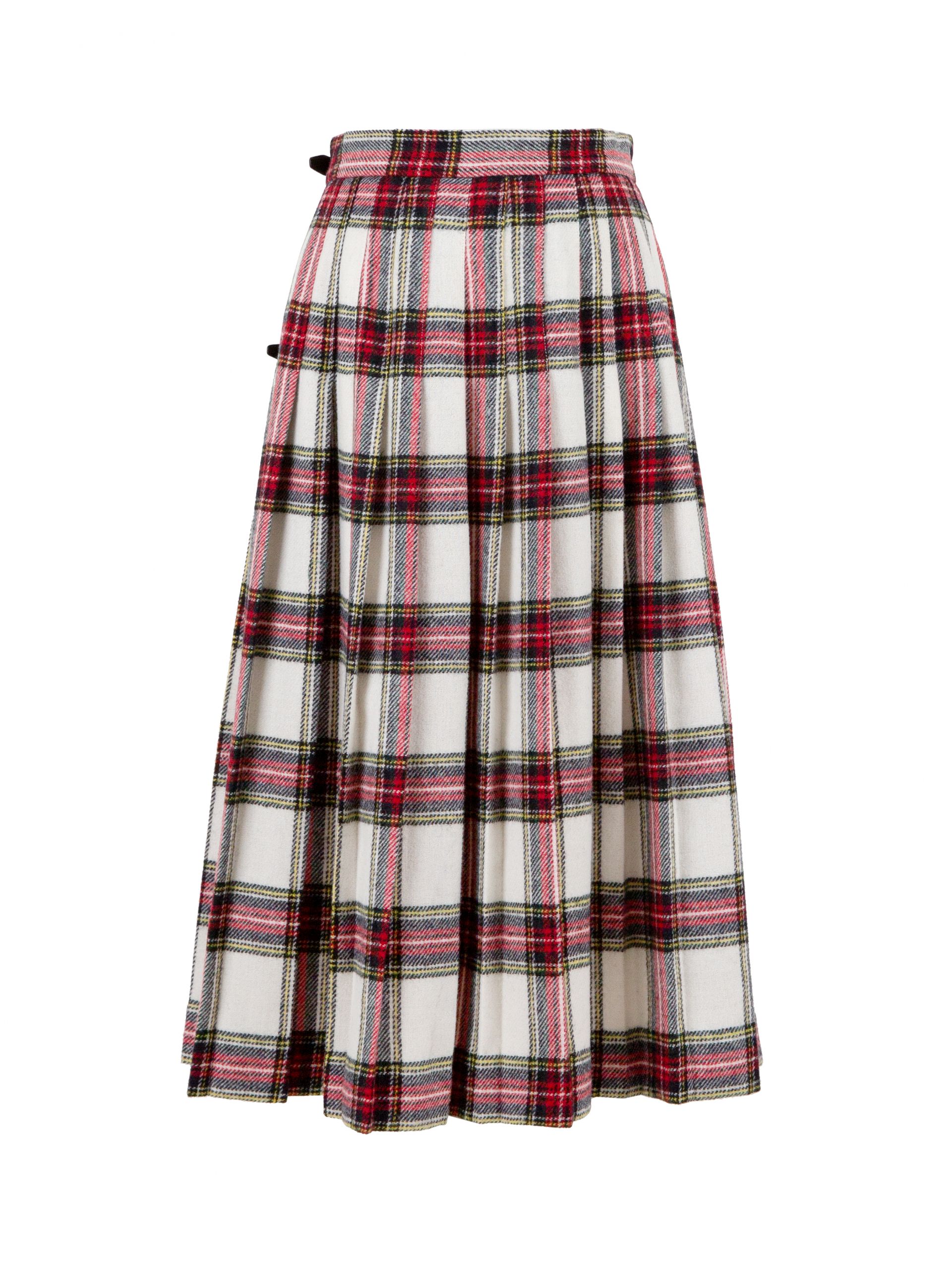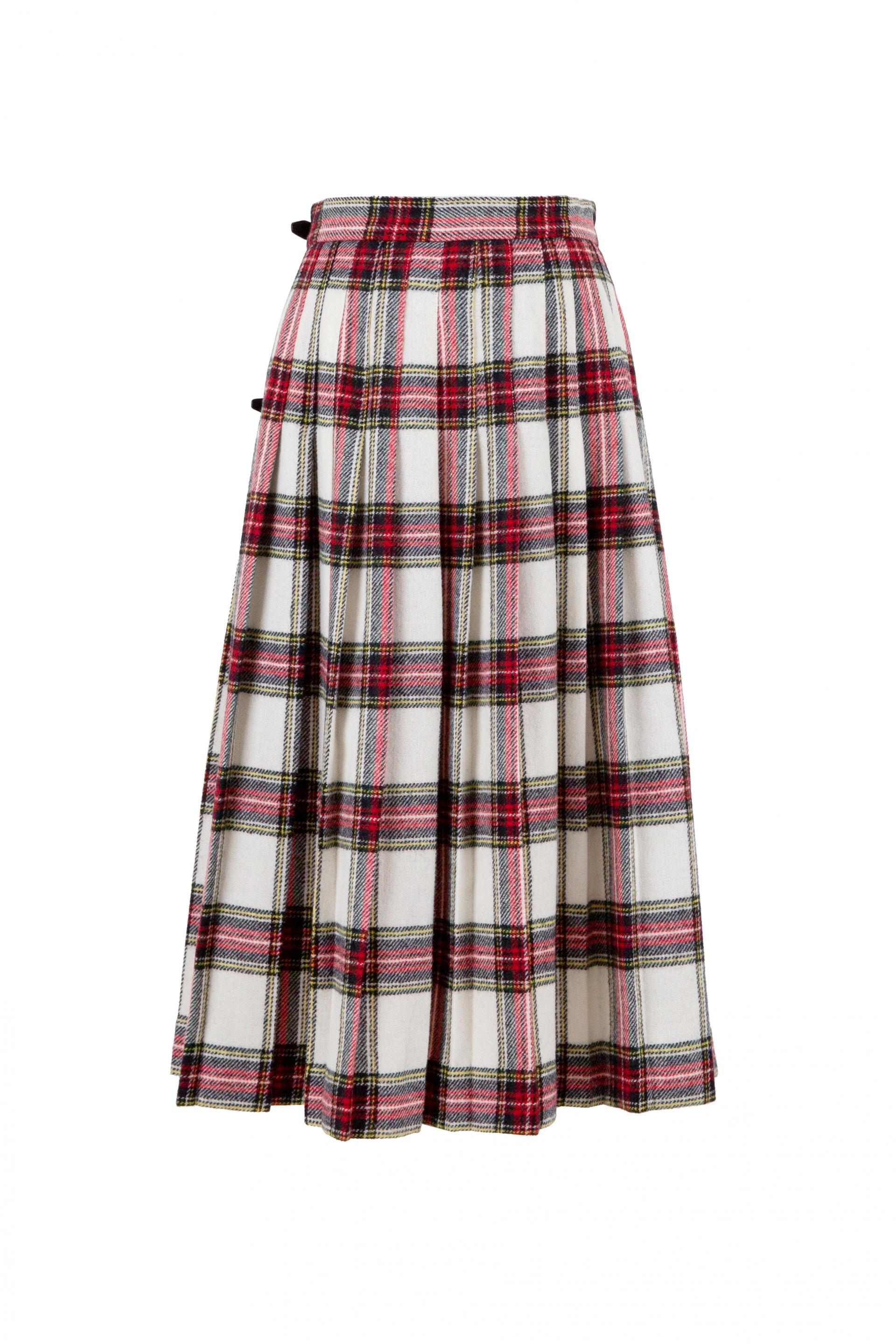 앞면은 플랫, 뒷면은 플리츠, 허리 부분의 버클 잠금, 스커트 트임 부분을 고정 시킬 수 있는 세이프티 핀까지 오리지널 킬트 스커트의 디테일을 고스란히 담았습니다.