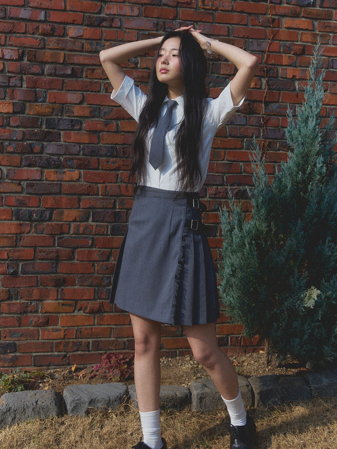 - 앞부분은 플랫, 뒷부분은 플리츠로 이루어진 랩 스커트